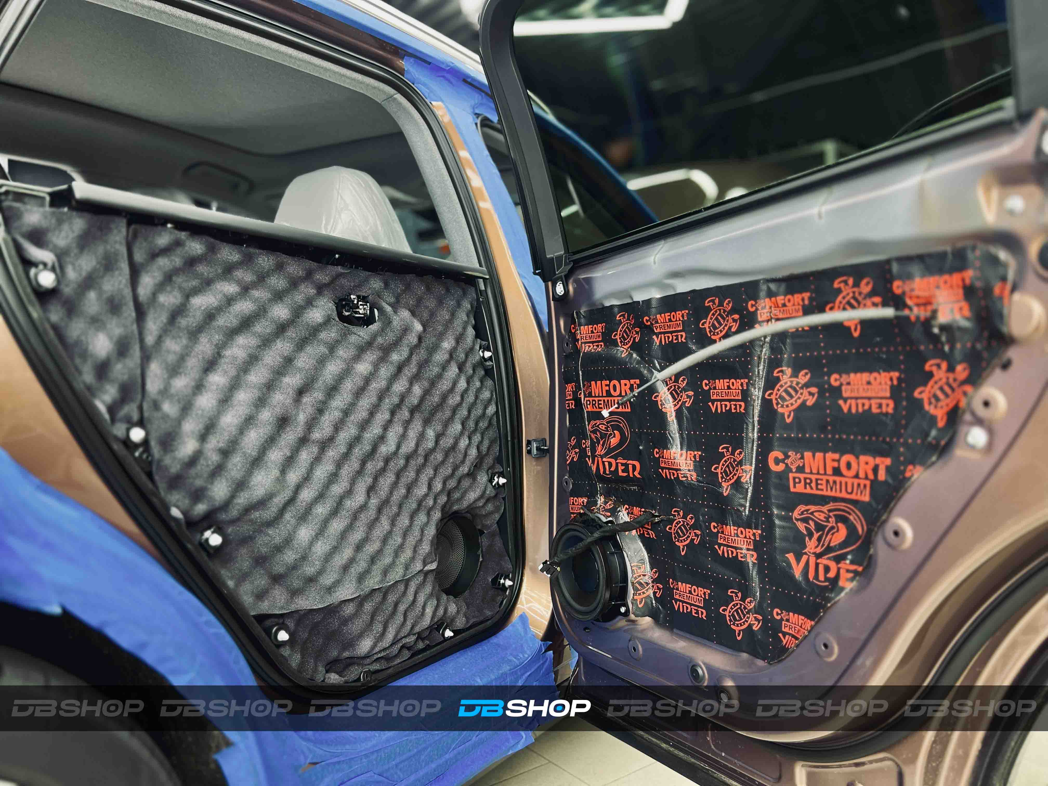 На каркасе двери и двери багажника нанесли премиальный материал Comfort Mat Viper и завершили изоляцию шумопоглощающими волнами Comfort Mat Soft Wave.