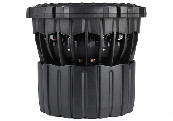 Самый старший представитель серии инновационных модульных сабов с карбоновым диффузором типоразмером 30 см и мощностью RMS 4500 Вт. Благодаря модульной архитектуре устройства можно быстро заменить неисправный узел. Саб предлагается с высокоэффективной системой охлаждения, основу которой составляет алюминиевый радиатор. Звуковая катушка размером 4 дюйма получила двойную намотку из плоского алюминия, что придает ей непревзойденную термостойкость.